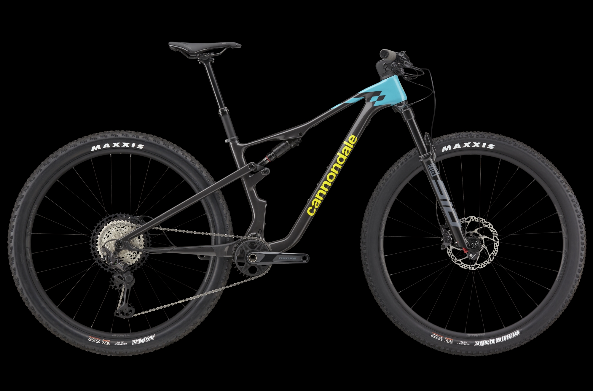 Lightweight RockShox SID Select 120mm fork and SIDLuxe Select+ rear shock, with a TwistLoc Ultimate remote lockout.